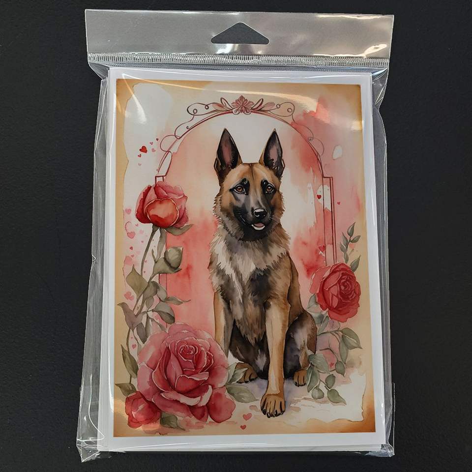 Belga Malinois Valentine Roses A7 Tarjetas de felicitación Paquete de 8 Whimsical 5x7 Tarjetas de notas en blanco con sobres