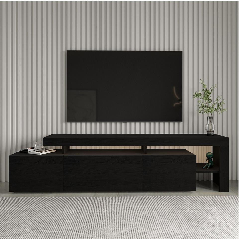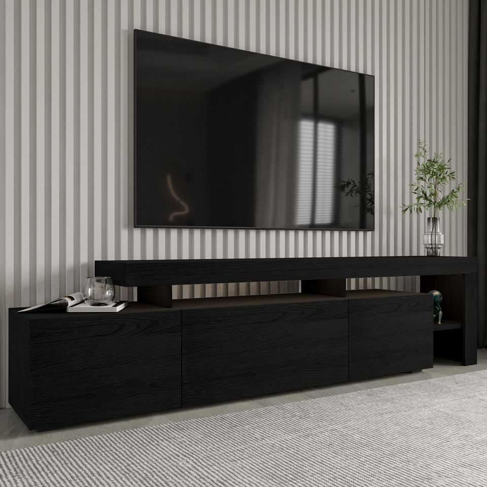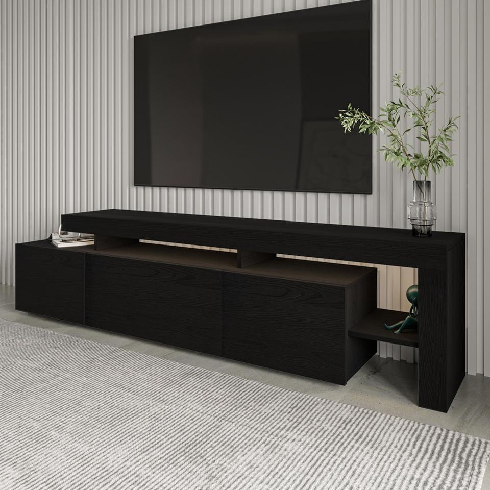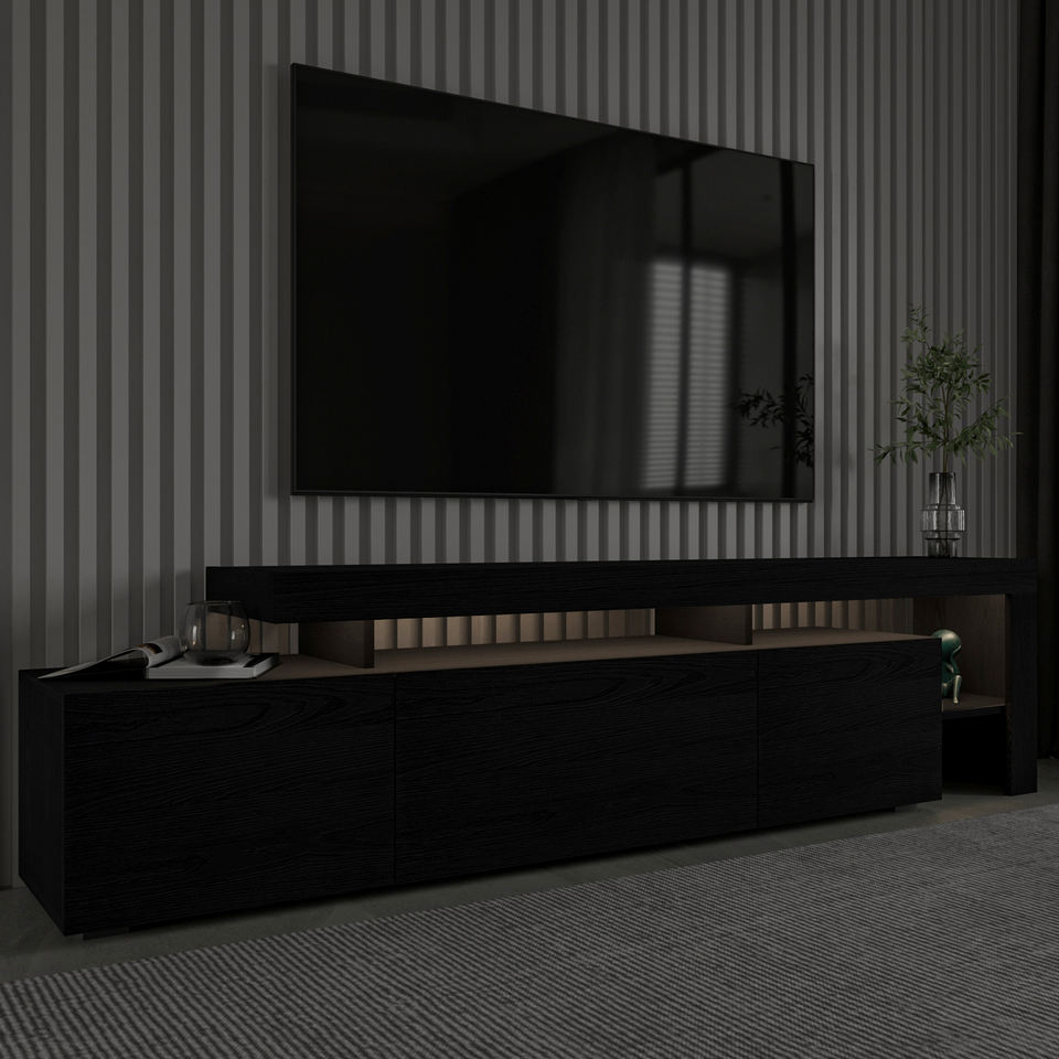 Unidad de TV con iluminación LED Beliz, Unidad de TV de alta calidad premium de diseño europeo elegante y funcional moderna de madera negra