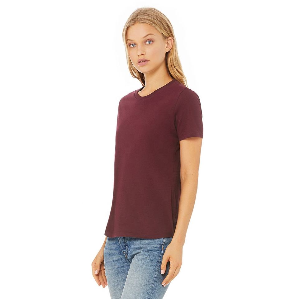 Bella Canvas barato cuello redondo liso mujeres relajado Jersey camiseta a granel liso en blanco mujeres camisetas transpirables camisetas