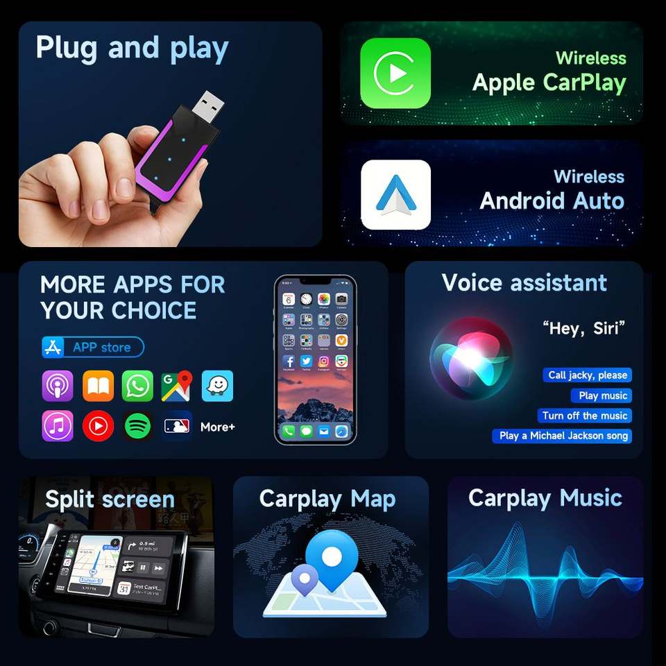 Beloauto Universal con cable inalámbrico CarPlay Android Auto adaptador Plug & Play USB AI BOX 2 en 1 conversión inalámbrica 1 año de garantía