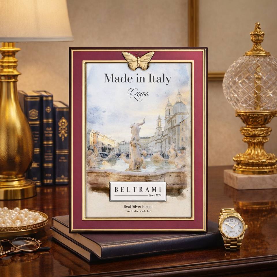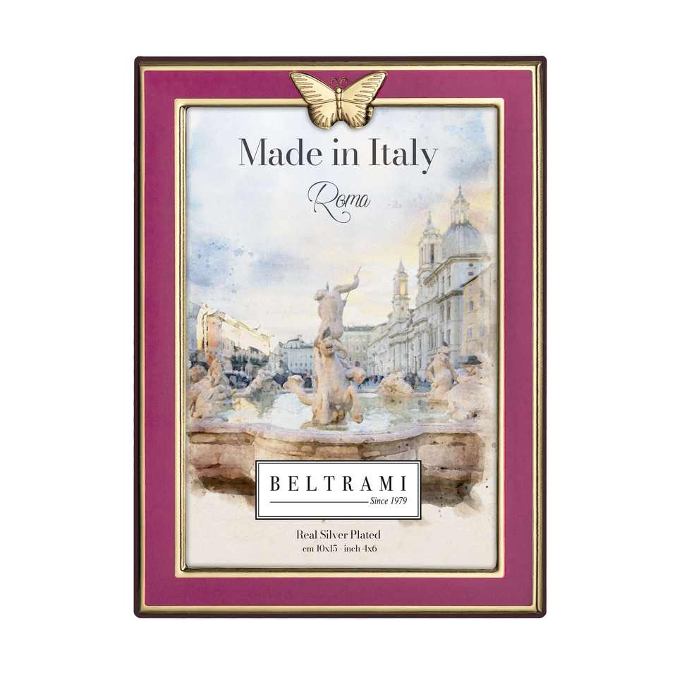 Marco de Fotos Beltrami de 4x6 Pulgadas Plateado con Diseño de Mariposa Dorada Fucsia