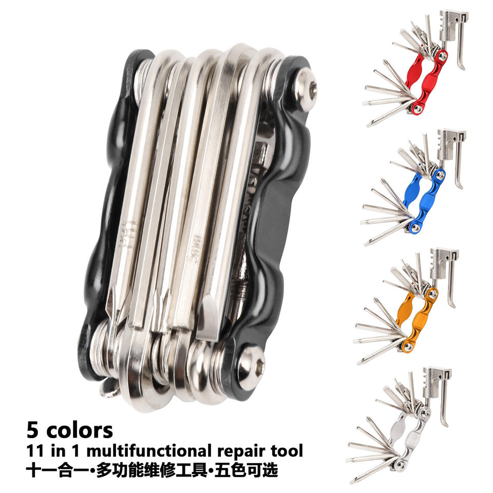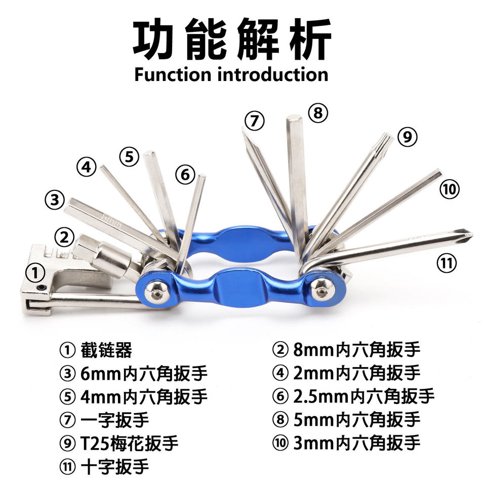 Juego de herramientas multiusos 11 en 1 para reparación de bicicletas con extractor de cadena, color azul