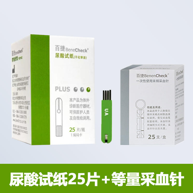 Specification:Baijie uric acid test strips, 25 strips, 25 needles