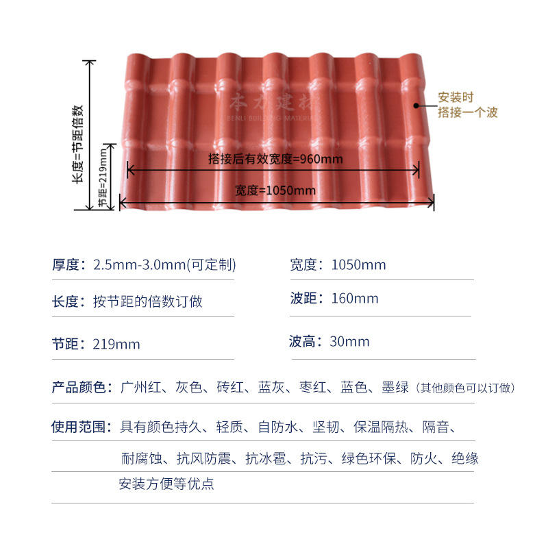 Benli Building Material ASA Plastic Resin Roof Tiles Corrugated Synthetic Resin Villa Roofing Waterproofing