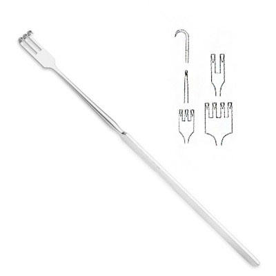 Retractores Traqueales Bernay de 17.0 cm, Instrumentos Quirúrgicos ENT, Tipo Rastrillo para Dedos, 4 Puntas, Acero Inoxidable Afilado, Certificación CE