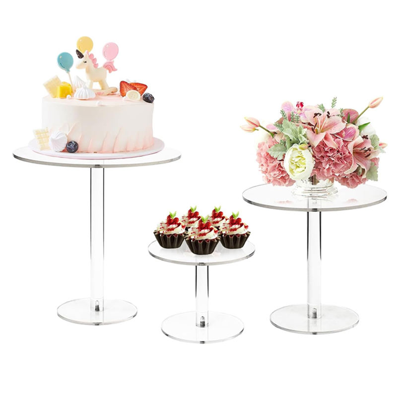 Soporte de disco de pastel redondo de acrílico transparente a medida, soporte de exhibición de postre de Pizza desmontable para magdalenas, decoración de pasteles de fiesta de boda
