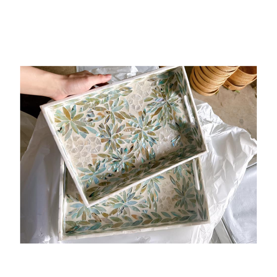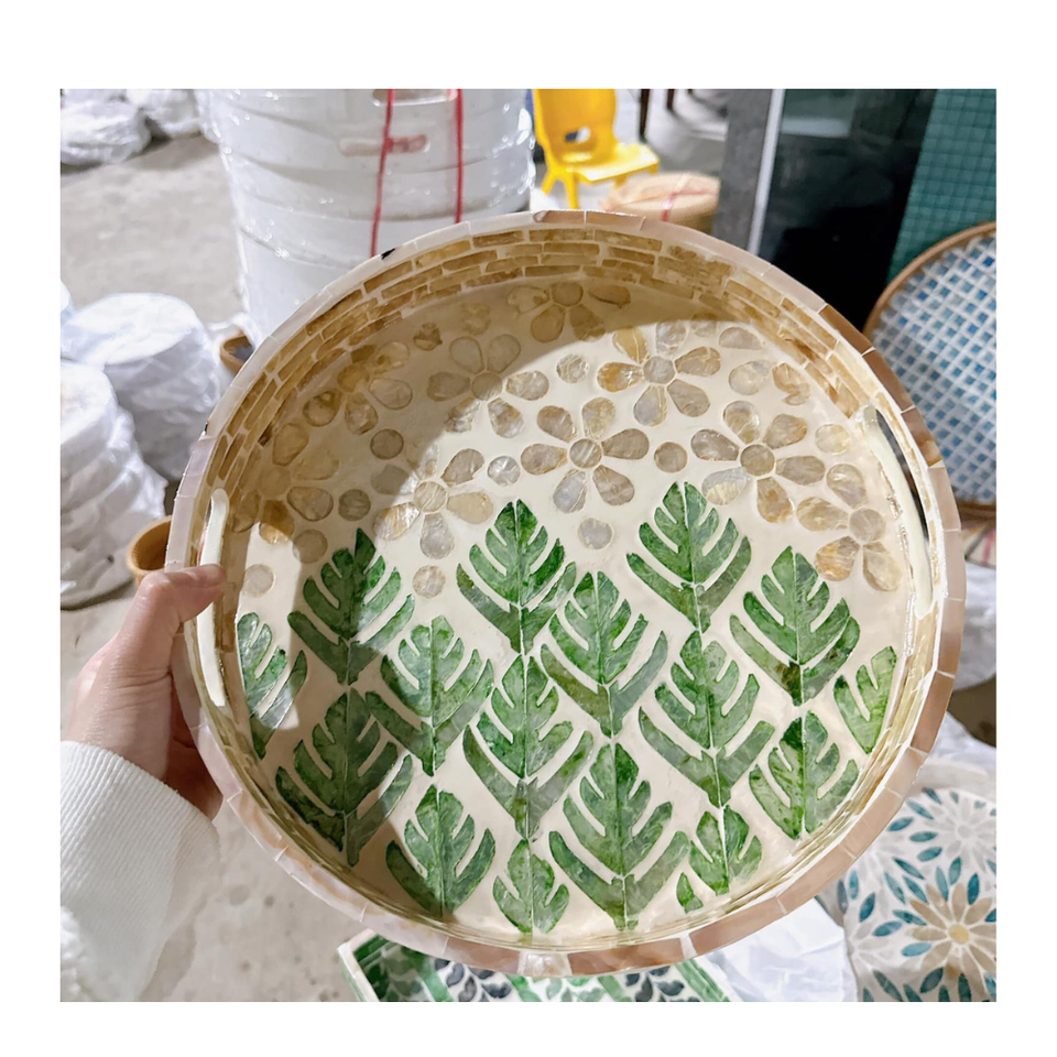 Bandeja Decorativa Versátil de Arte Sostenible de Alta Calidad con Incrustaciones de Nácar Floral Hechas a Medida, Pedidos Personalizados de 15 cm a 100 cm