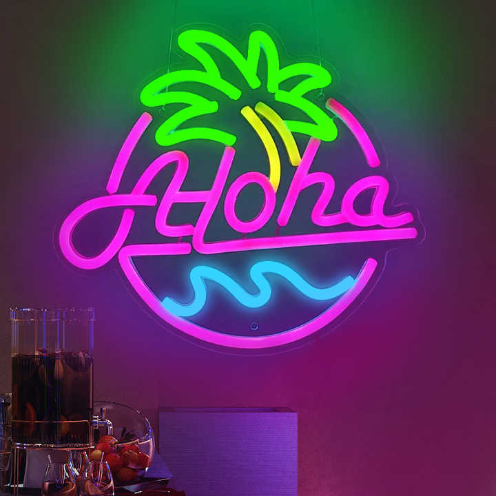 A medida producción en masa varios colores cambiables Aloha Bar atmósfera resplandor acrílico Digital LED neón señalización para decoración interior