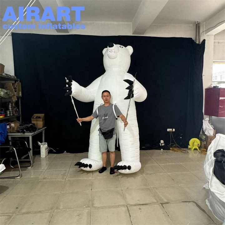 Desfile de caminar exterior de tamaño a medida que decora marionetas de oso polar inflables, marionetas de oso blanco inflables
