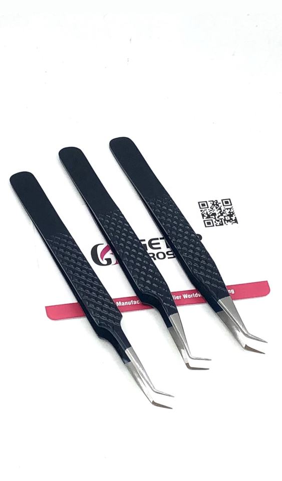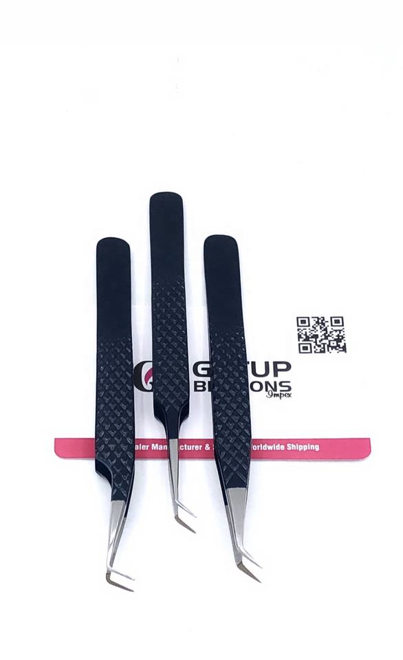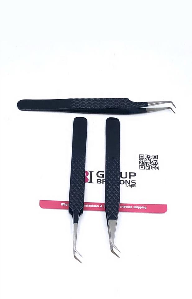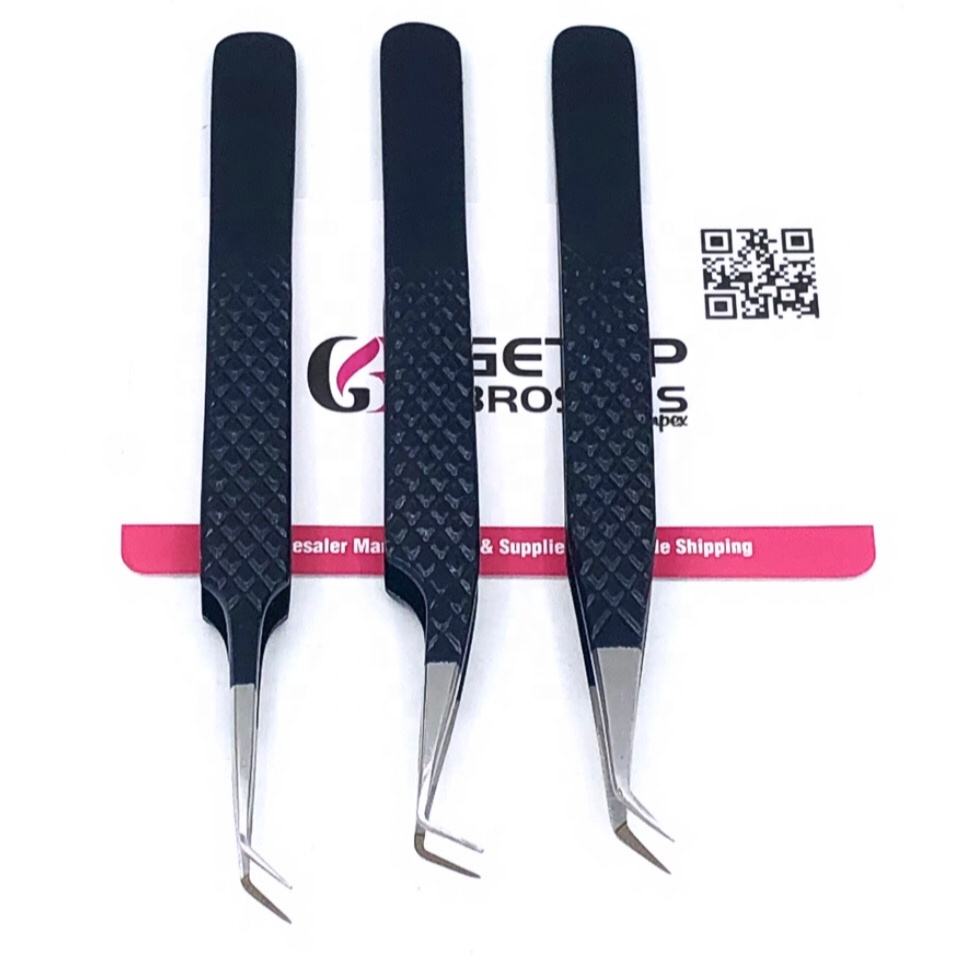 Pinzas para Pestañas de Acero Inoxidable con Punta Recta de 45/90 Grados y Recubrimiento en Polvo Midnight de GETUP BROSONS IMPEX, Herramienta de Belleza