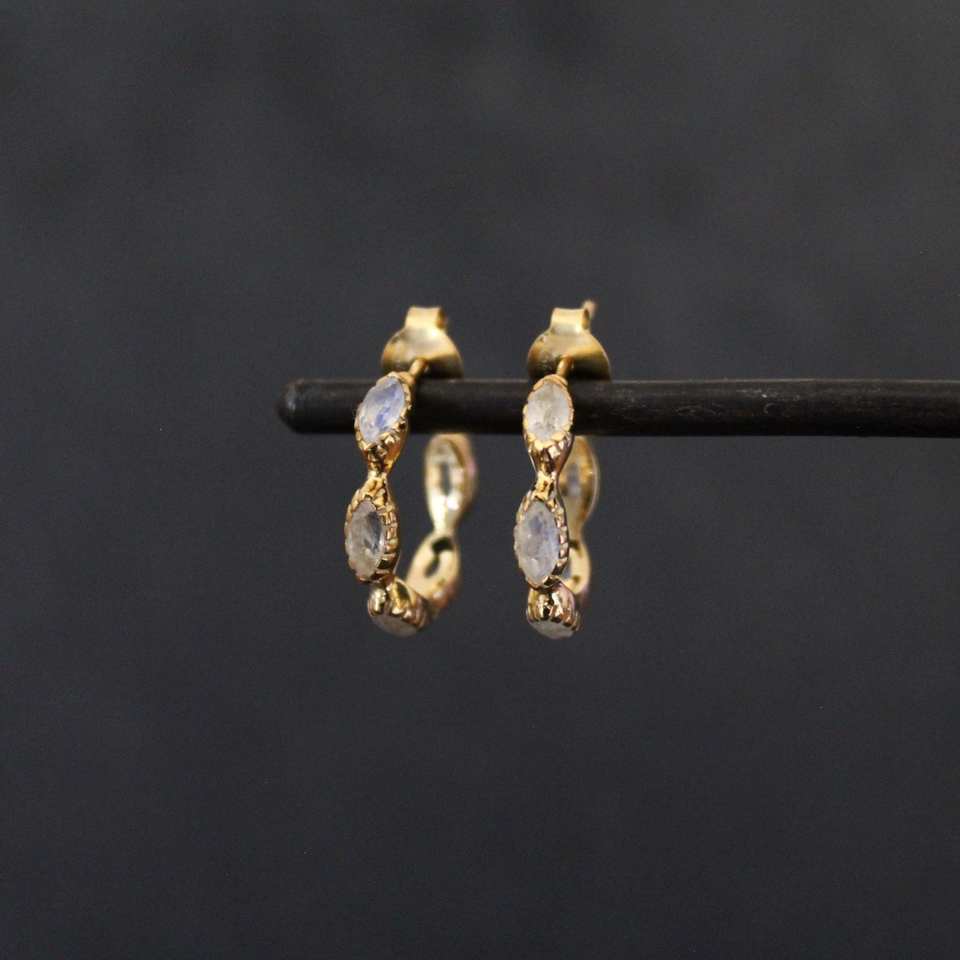 Los mejores pendientes de aro de piedra lunar hechos a mano chapados en oro y plata de ley 925, venta directa de joyería fina de fabricantes y proveedores