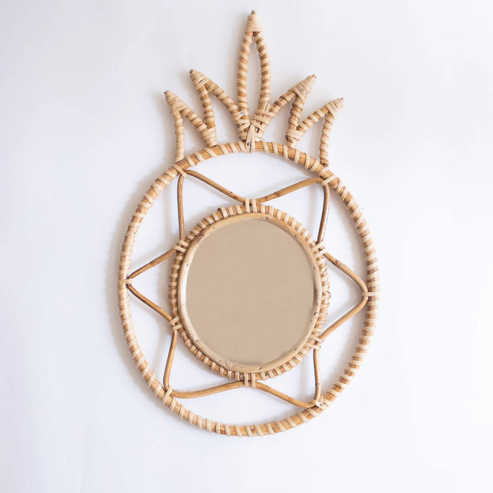 Espejo de piña de ratán hecho a mano para niños