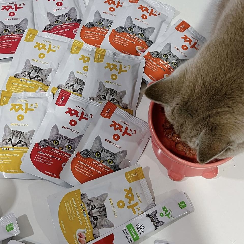 La mejor opción JJANG * 3 bolsa Eco Choice 70g pollo atún salmón atún pollo salmón gatito gato comida húmeda revendedor paquete gato comida húmeda