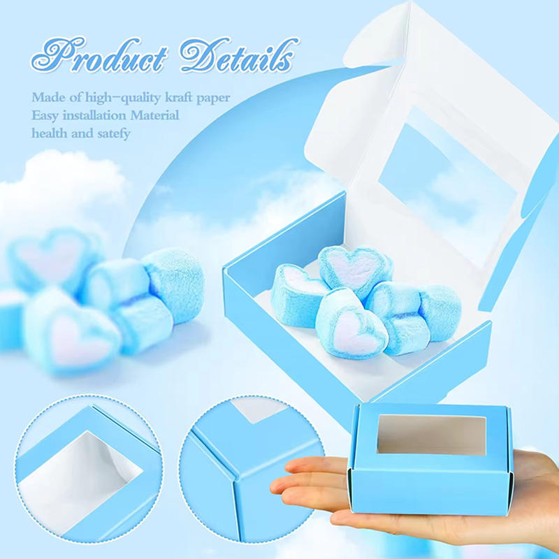 La mejor opción, embalaje de regalo duradero confiable, galleta de caramelo, Mini caja de pastel de papel personalizada Kraft azul con ventana