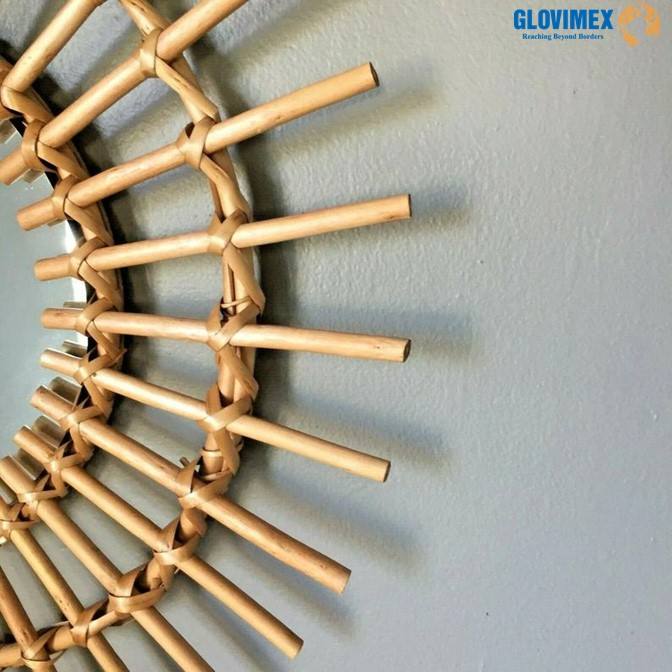 Mejor colección de espejos de ratán de bambú, marco de luz, espejo de salón de pared, muebles de sala de estar de mimbre seguro Natural
