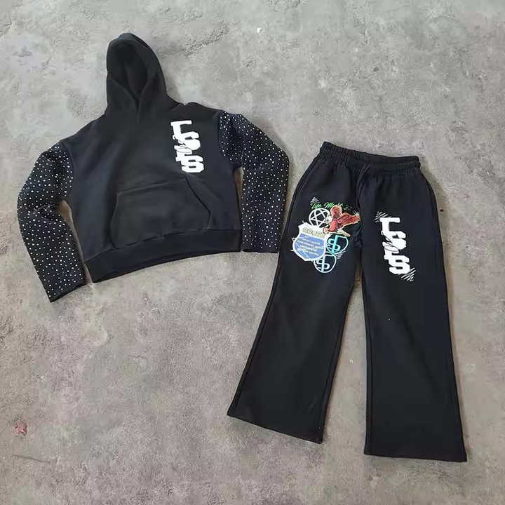 Los mejores chándales unisex personalizados, chándal de invierno para hombre con sudaderas con capucha y pantalones acampanados, conjuntos de ropa lisa del fabricante