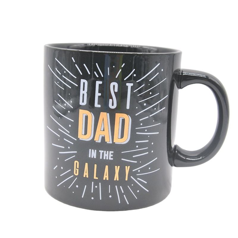 El mejor papá de la galaxia Taza de café de cerámica negra de 11oz Regalo divertido del Día del Padre para papás fanáticos del espacio
