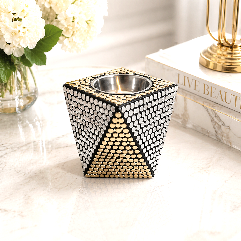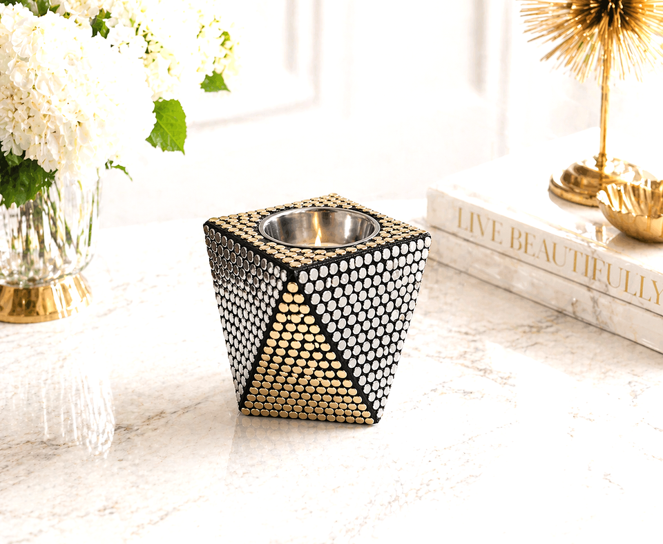 Portavelas de Mosaico de Lujo, Cuadrado, Metálico, con Tachuelas, para Velas de Té, Decoración para el Hogar, Centro de Mesa, Artículo de Regalo, Diseño Moderno