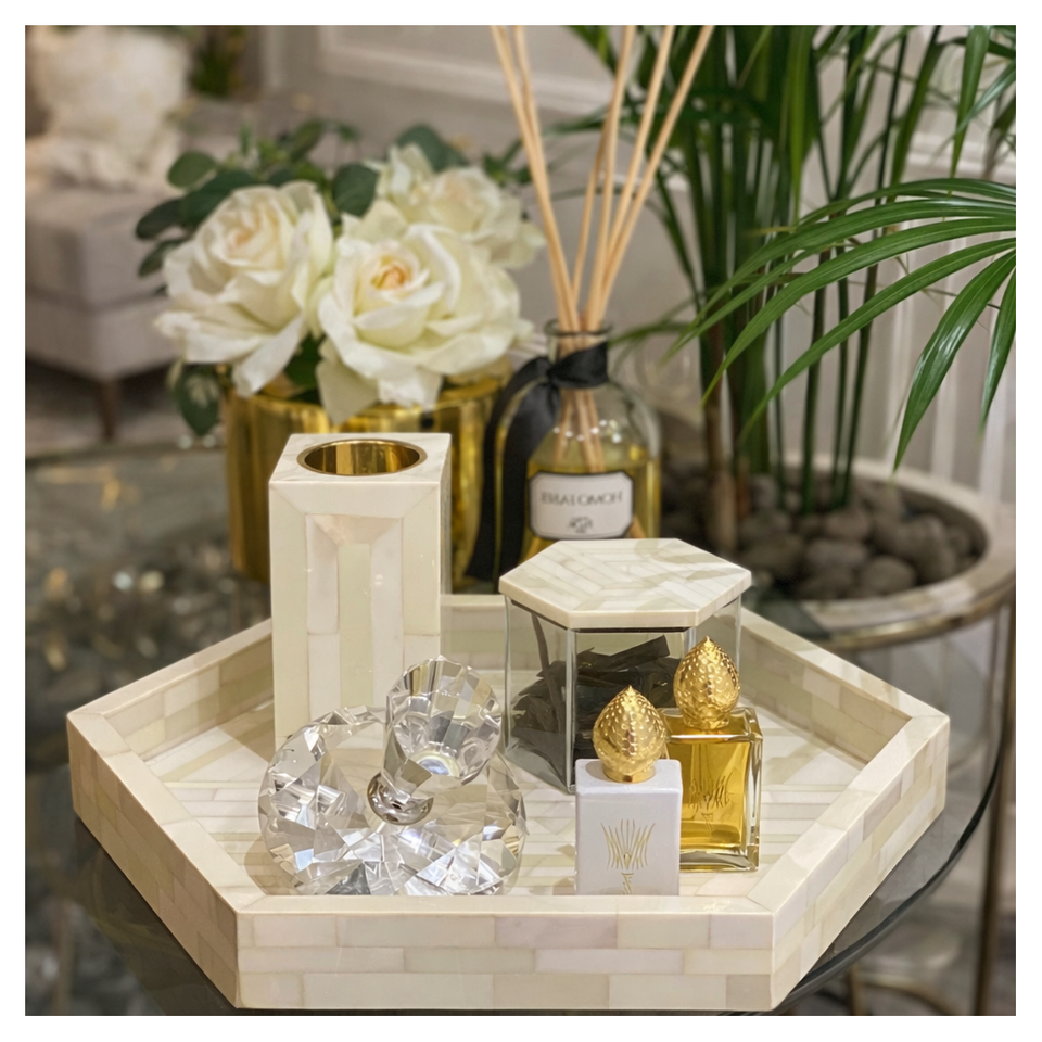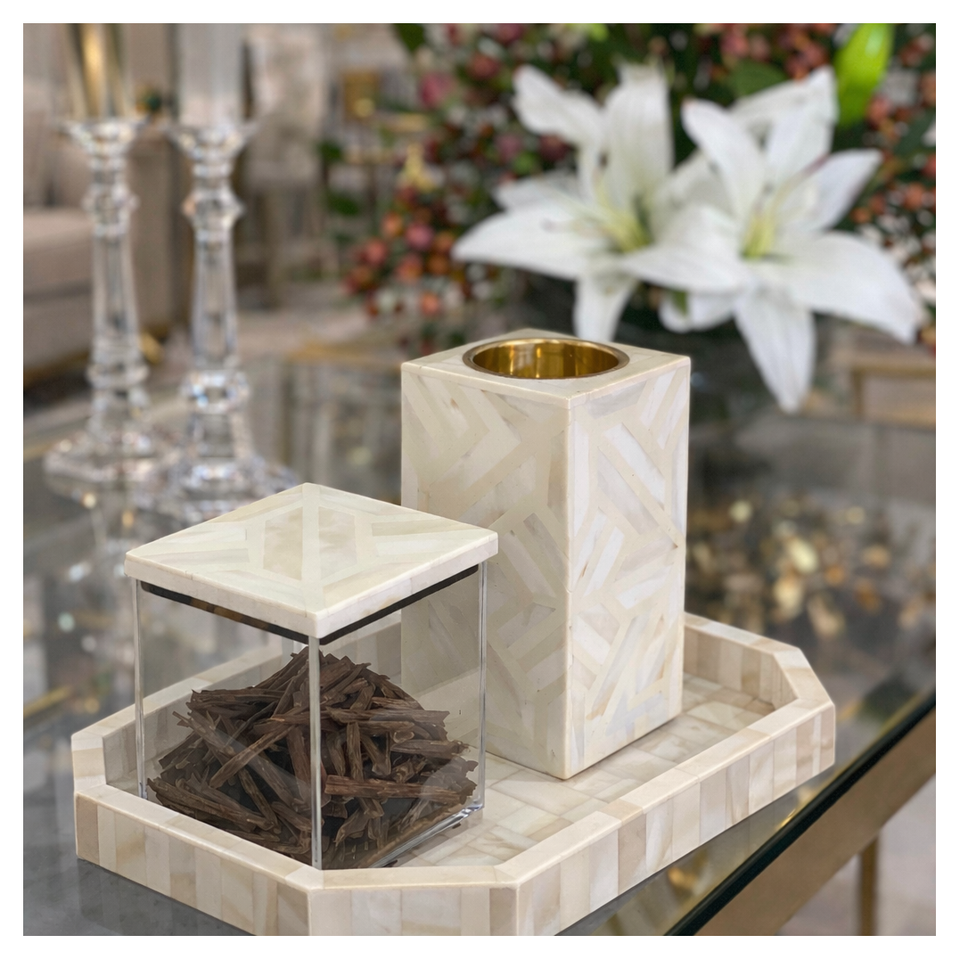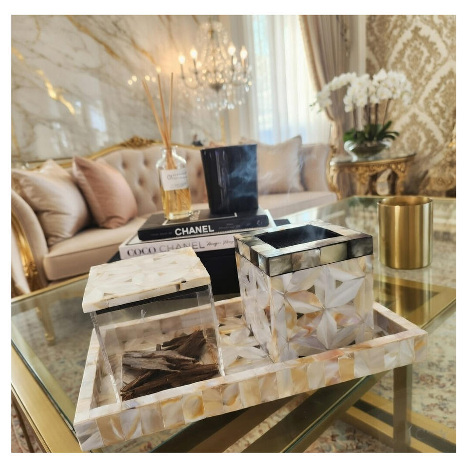 Juego de incensario con bandeja de bakhoor con incrustaciones de nácar