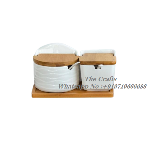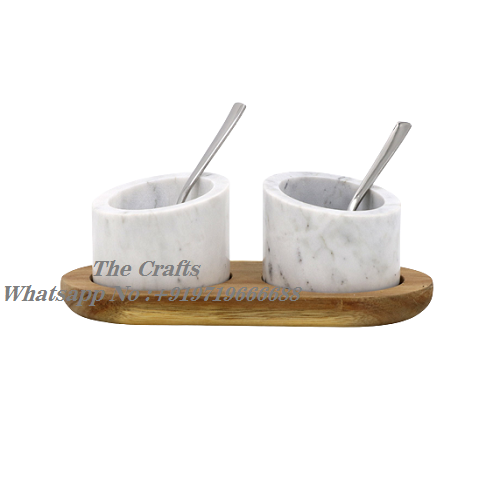 Juego de Especias de Diseño Único, Frascos de Mármol con Tapas de Madera y Bandeja, Tamaño Personalizable, Diseño Exclusivo para Condimentos de Cocina