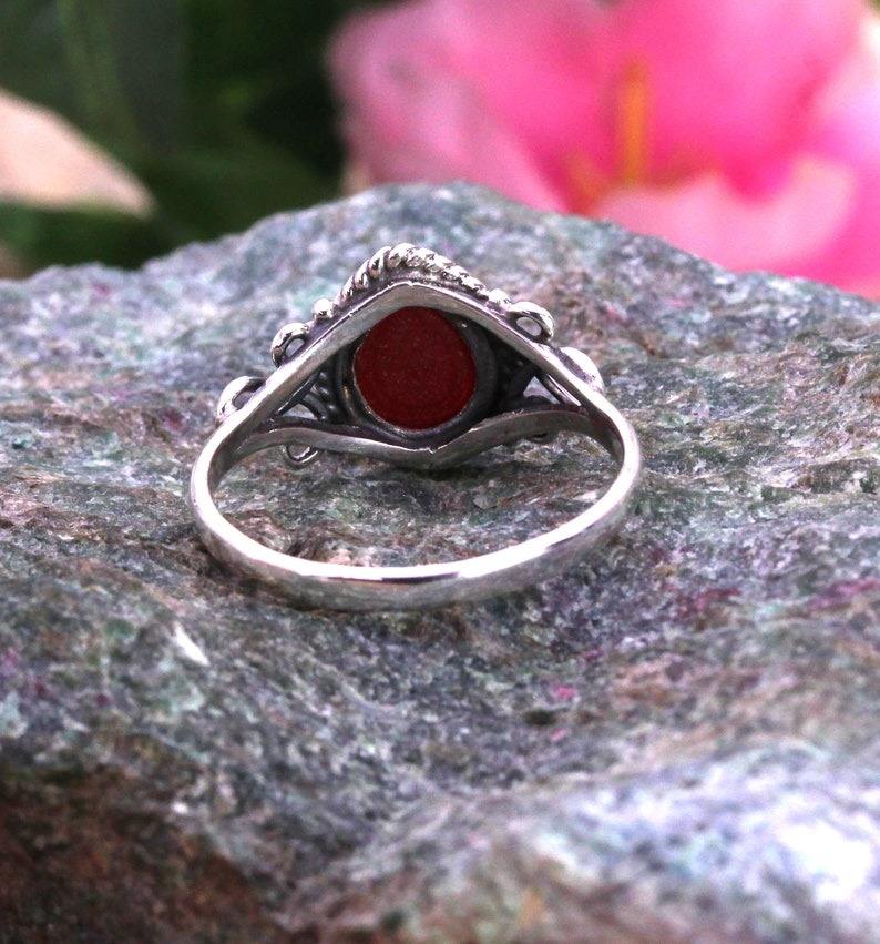 Anillo hecho a mano de piedras preciosas de mejor diseño 925 anillo de rubí de cabujón de plata esterlina sólida 925 anillo de promesa estampado joyería hecha a mano