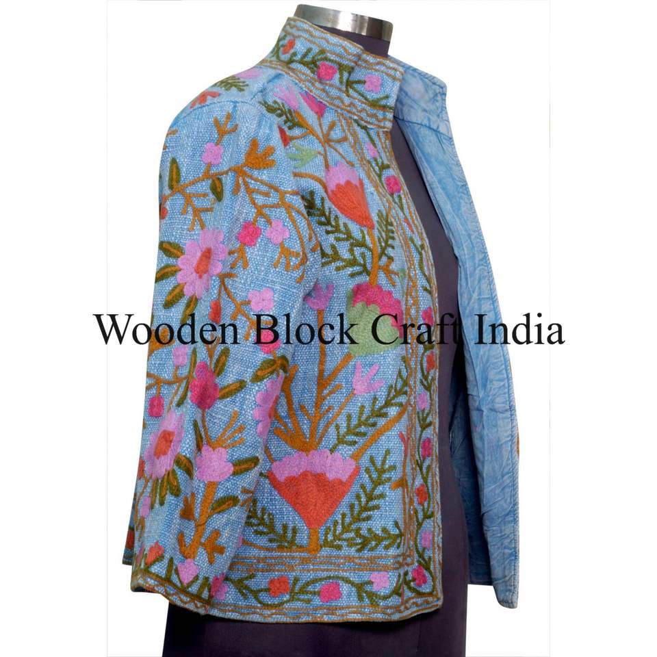 Chaqueta de Invierno para Mujer, Diseño Exclusivo, Hecha a Mano, con Bordado Suzani, Chaqueta Corta de Tela TNT con Diseño Floral