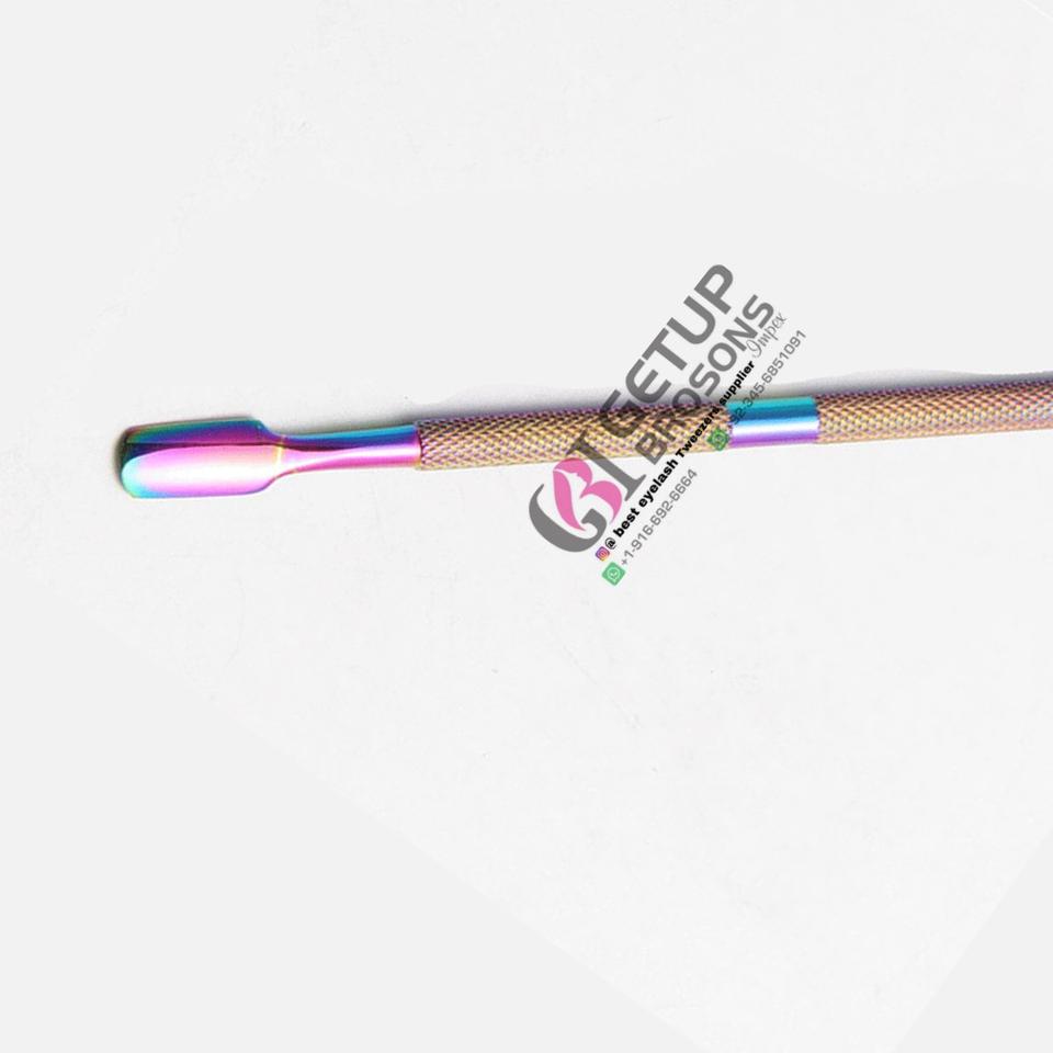 Empujadores de uñas de mejor diseño Plasma arcoíris Acero inoxidable Cuidado personal con su propio diseño de logotipo Instrumentos de belleza de color personalizado