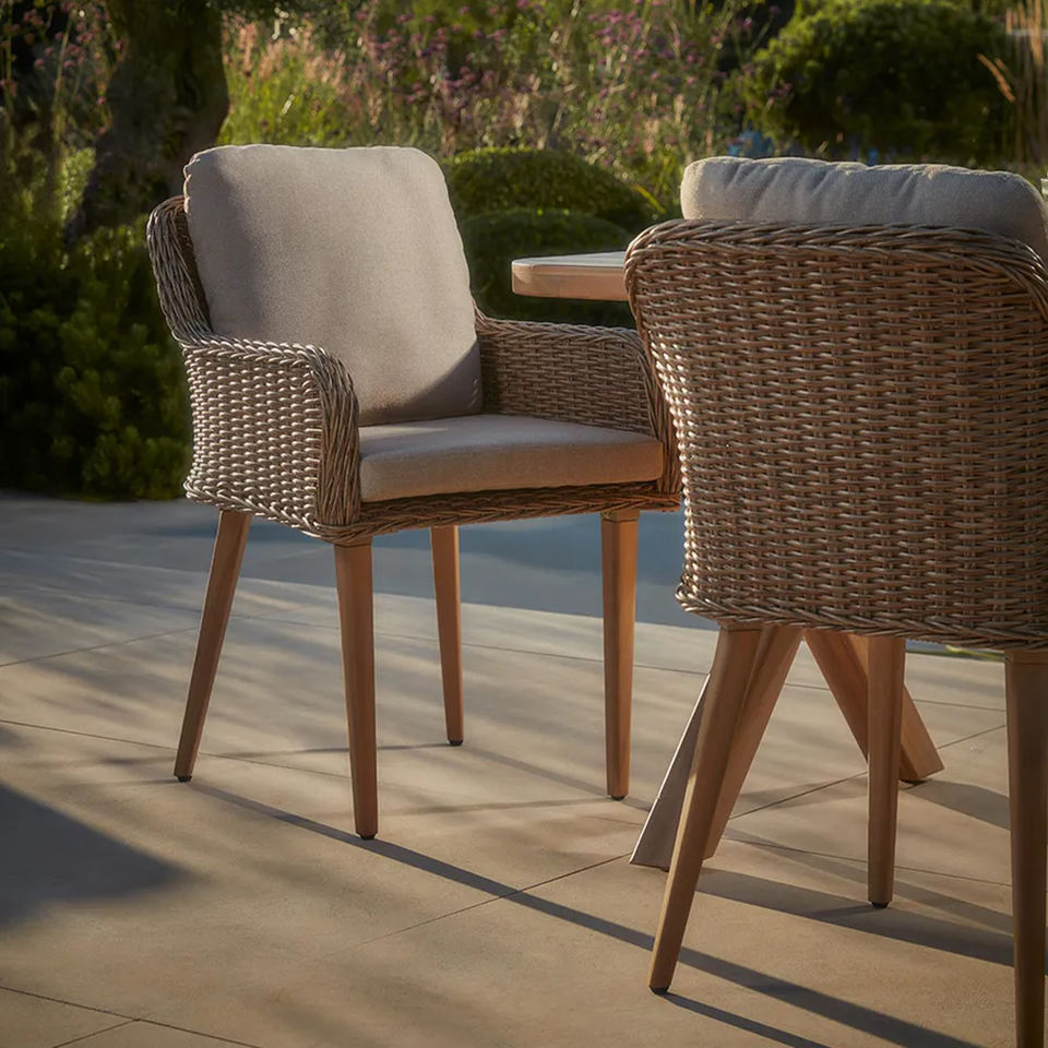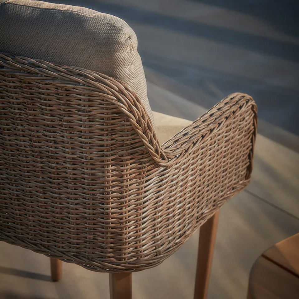 Nombre del producto:El mejor diseño de mesa de comedor al aire libre conjunto de madera de teca y silla de ratán-Flor