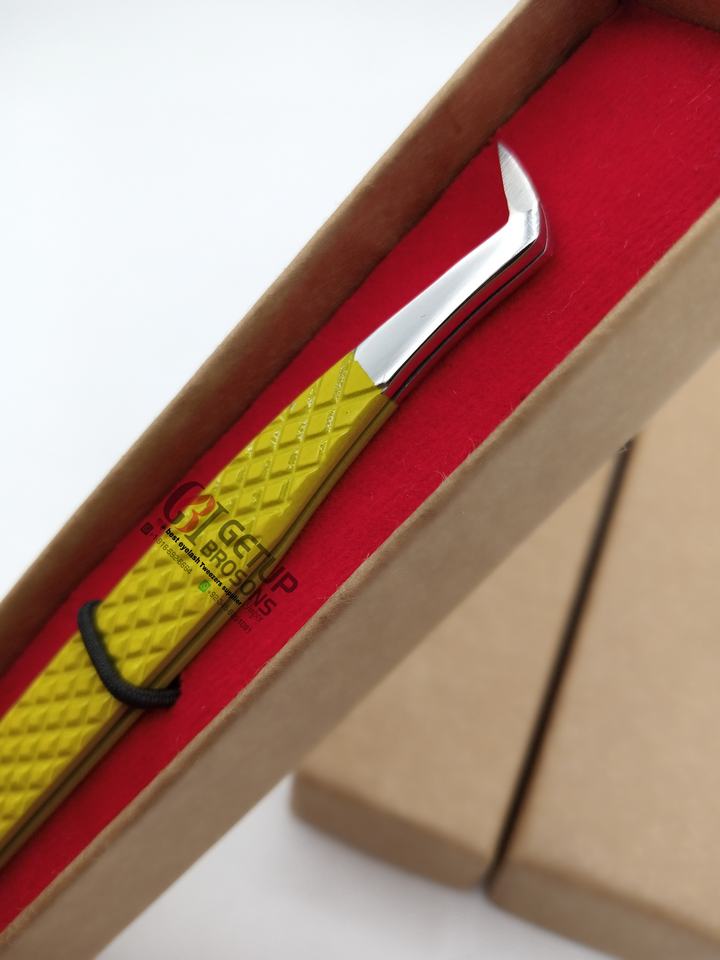 Pinzas de extensión de pestañas de acero inoxidable con recubrimiento de polvo amarillo de volumen ruso, logotipo personalizado, herramientas de belleza, diamante