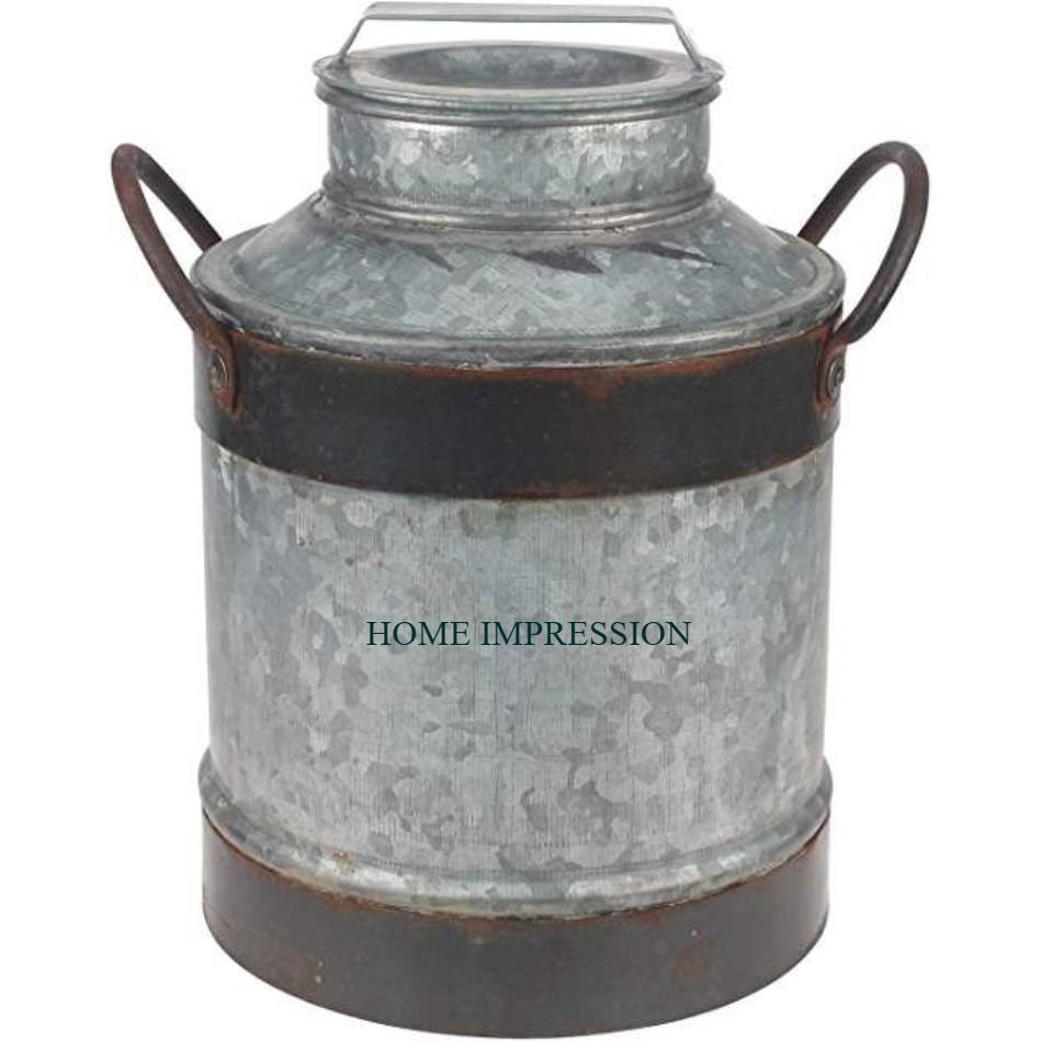 El mejor diseño de lata de leche galvanizada de Metal rústico con asas para uso doméstico y en el jardín, maceta de jardín al por mayor a precio barato de la India