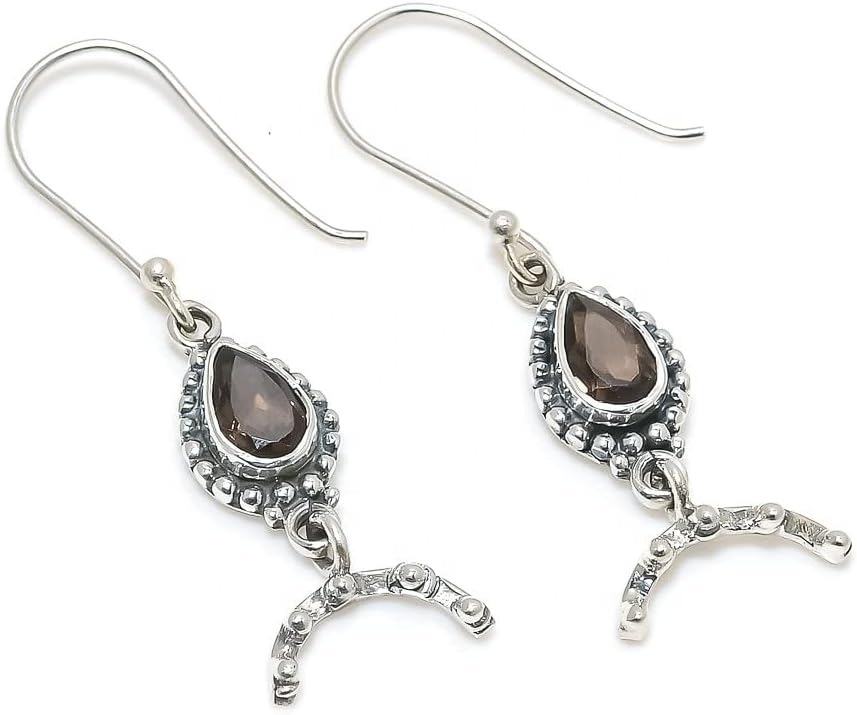 El mejor diseño de piedras preciosas de cuarzo ahumado hechas a mano Simple 925 pendientes de plata esterlina sólida para mujer pendientes colgantes de moda joyería