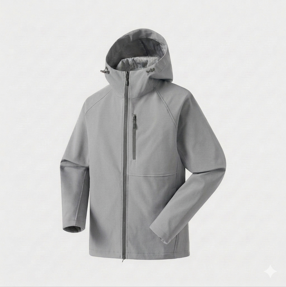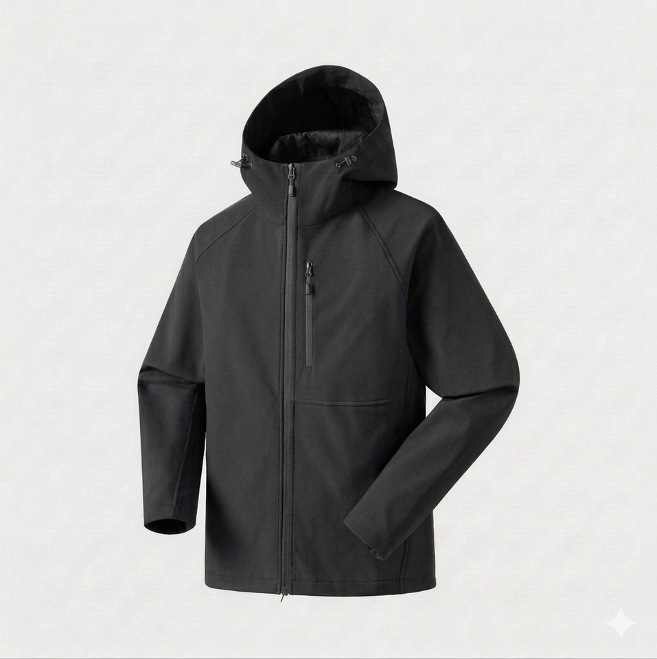 Chaqueta Softshell para Hombre de Diseño Superior, Color Sólido, Alta Calidad, Cuello Alto, Logotipo Frontal, Capucha, Secado Rápido y Transpirable