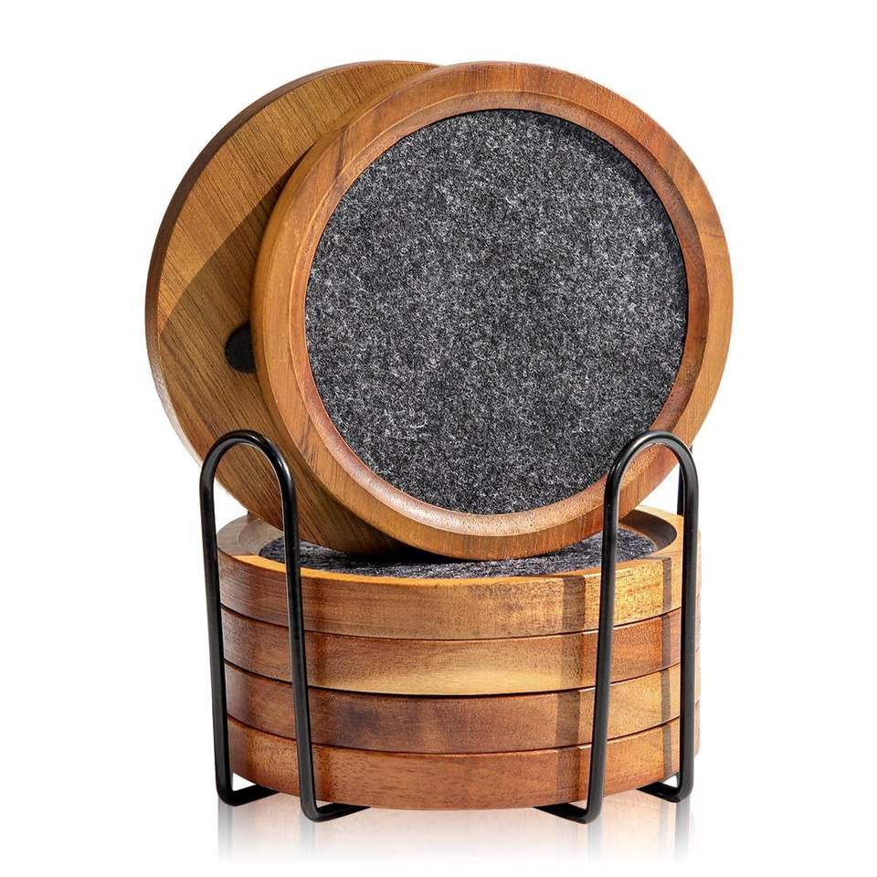 Posavasos de Madera de Diseño Cuadrado con Color Marrón, Mantel Individual y Almohadillas para Servir Bebidas, Posavasos Hechos a Mano