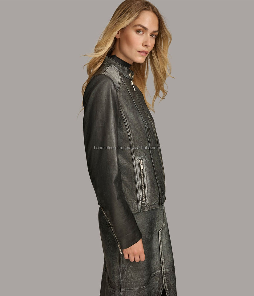 El mejor diseño de chaquetas para mujer Moto La mejor llegada para ropa de invierno Manga completa Personalizada 100% Chaquetas de cuero originales para mujer