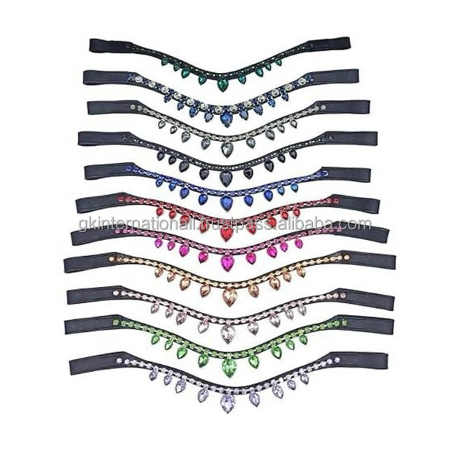 Bandas para cejas de caballo con cuentas de cristal de cuero personalizadas mejor diseñadas Bandas para cejas de brida de caballo occidental a los mejores precios