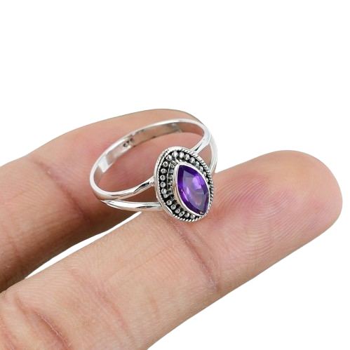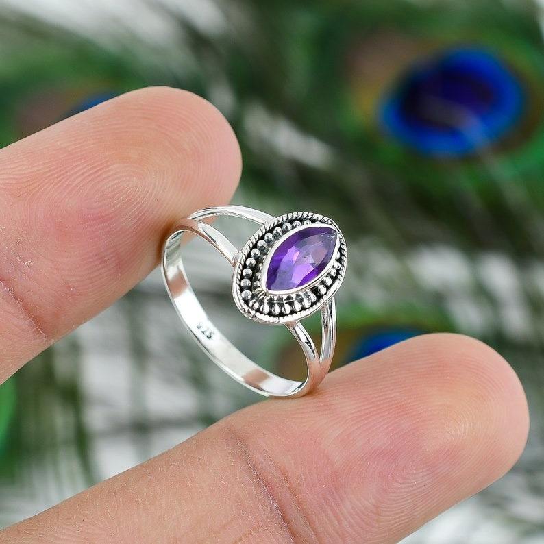 Mejor diseñador clásico hecho a mano amatista piedra preciosa cabujón anillo 925 sólida plata esterlina 925 estampado moda anillo de plata joyería