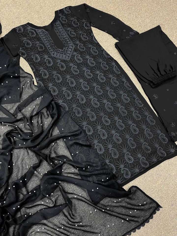 El mejor diseñador listo para usar ropa de boda Faux Georgette hermoso bordado pesado trabajo Top y Palazzo con encaje elegante Dupatta