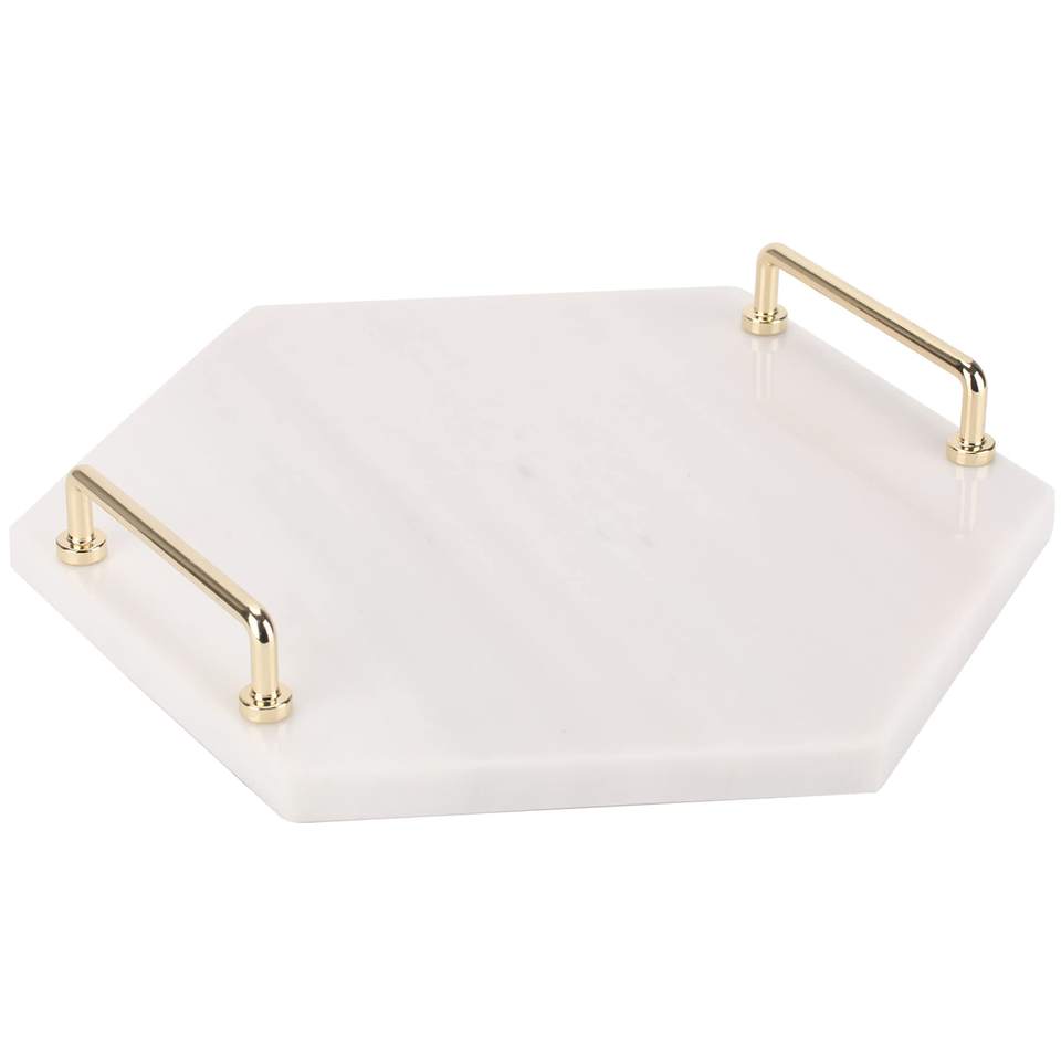 Bandeja de mármol Rectangular de mejor diseñador con mango de Metal dorado para artículos de cocina Bandeja de servicio de mármol blanco Personalizar bajo costo