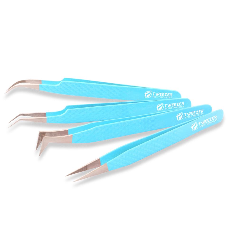El mejor juego de pinzas para extensión de pestañas, pinzas para pestañas de etiqueta privada de acero inoxidable para vello facial, caja de embalaje