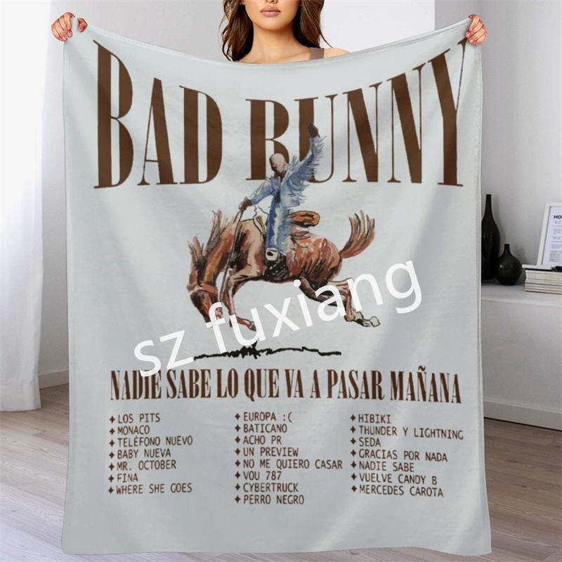El mejor precio de fábrica 1000 Todos los diseños aceptan Peso personalizado Pluma Karol G Bad Rabbit Manta de lana suave
