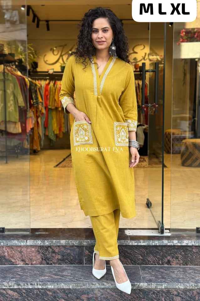 Conjunto de Kurti y Pantalón para Mujer, Listo para Usar, con Tela de Algodón Slub, Dupatta y Bordado, al Mejor Precio en India, en Existencia