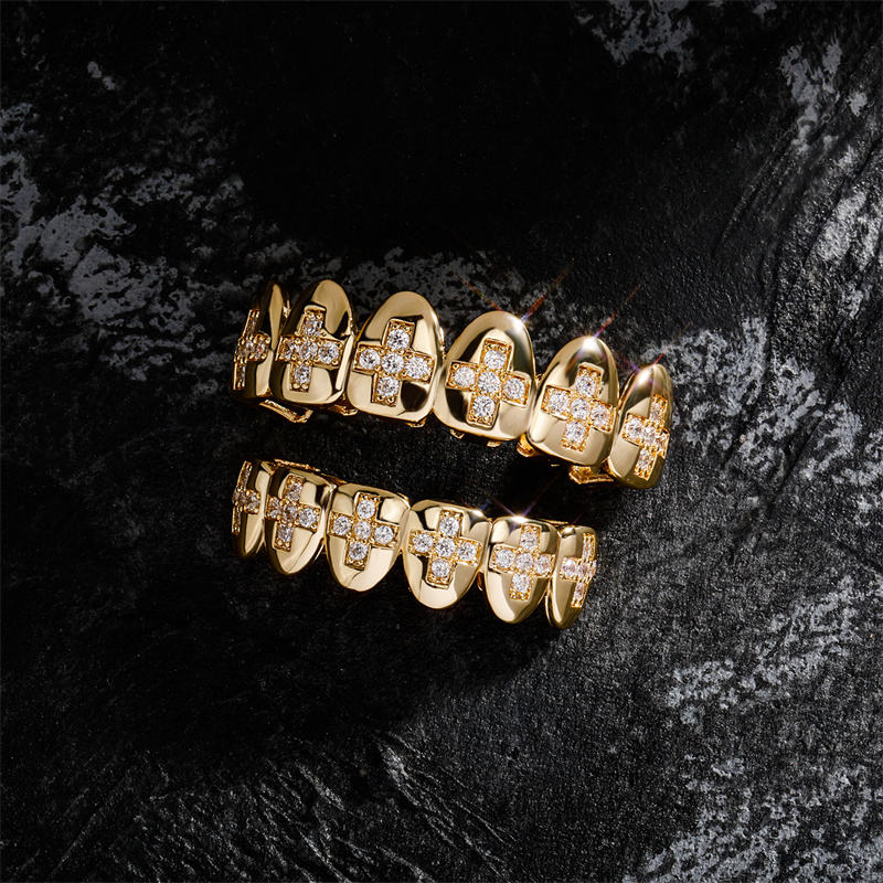 Las Mejores Joyas de Moda Hip Hop para Raperos: Grillz de Dientes con Zirconia Iced Out en Cruz Superior e Inferior para Hombres