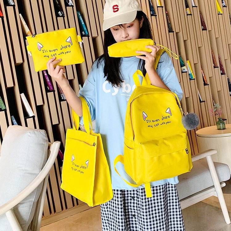 La mejor tendencia de moda, cuatro juegos de mochila con estampado de gato de lona, mochila escolar para estudiantes, conjunto de 3 uds, bolsa para estudiantes