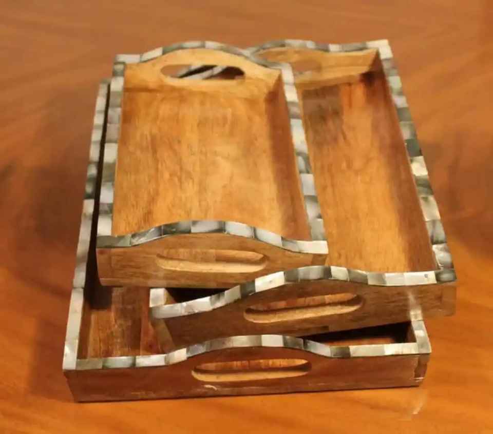 Bandeja de Servir de Madera de Acacia Ecológica Hecha a Mano por Diseñadores, Acabado de Primera Calidad, Duradera, Segura, Estilo Moderno, Ideal para Desayunos, Bodas y Fiestas