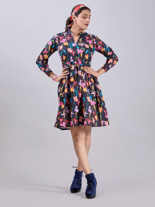 Vestido Midi Formal de Alta Calidad con Bordado Multicolor, Elegante y Moderno para Fiestas, con Dobladillo Evase en Georgette, Lavable