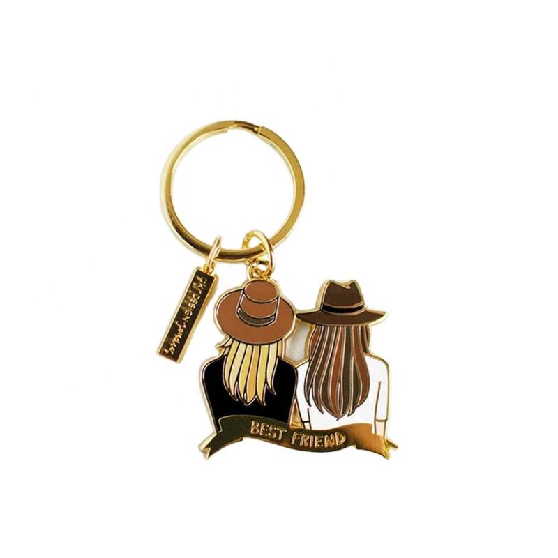 Mejor amigo esmalte llavero de alta calidad de esmalte chapado en oro recuerdo llavero