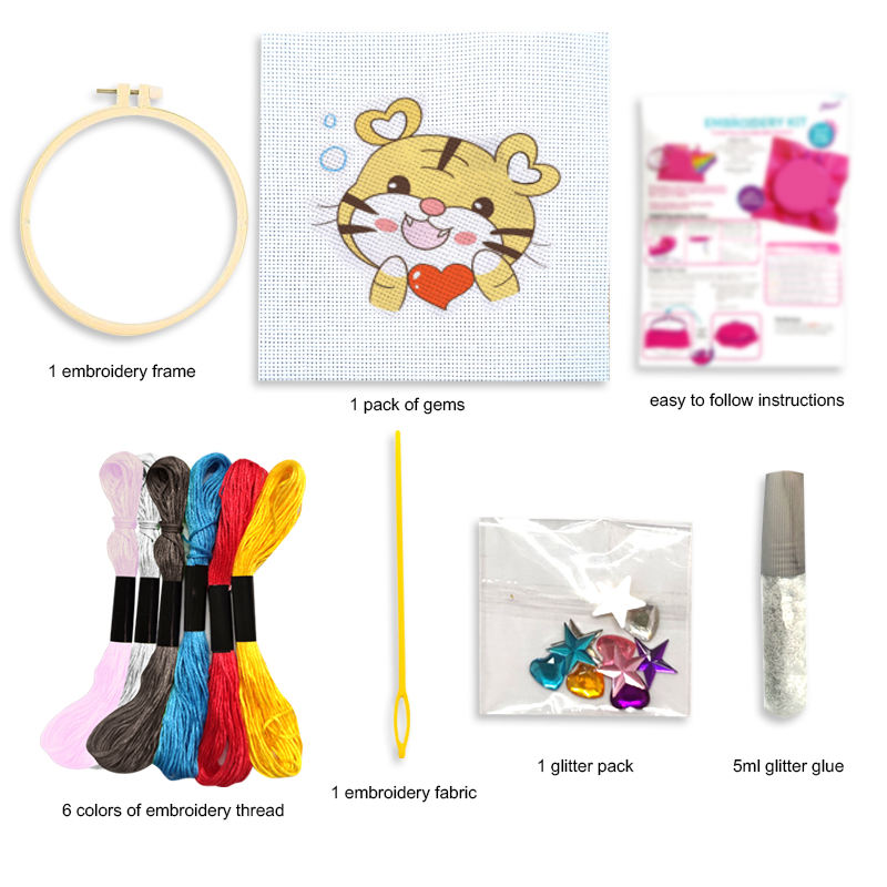 El mejor regalo para niños, agujas perforadoras de costura hechas a mano, Kits de inicio de bordado de punto de cruz para niños