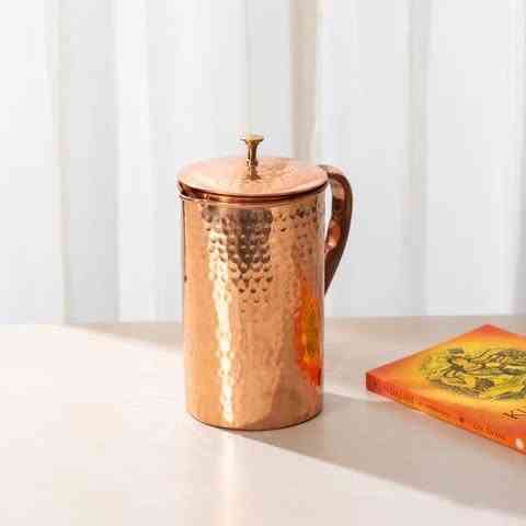 Jarra de Agua de Cobre Puro Hecha a Mano, Ecológica, con Asa de Vidrio para Beber Agua, Moscow Mule, Utensilios de Cocina, Decoración de Mesa