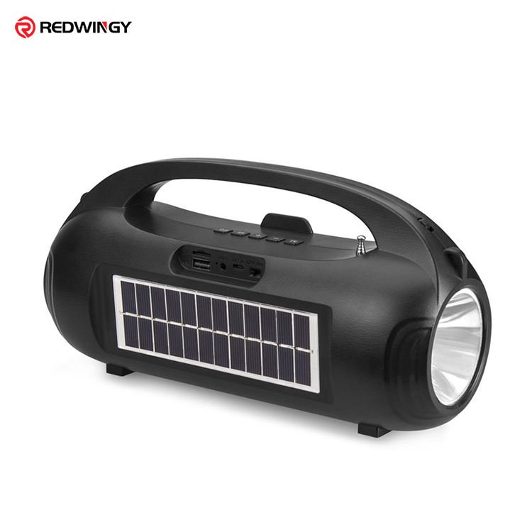 Caja de sonido con Subwoofer Hifi, altavoz con energía solar, linterna externa, altavoz inalámbrico con bluetooth y radio FM, color negro, el mejor