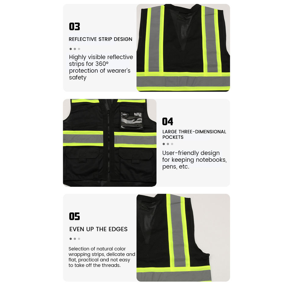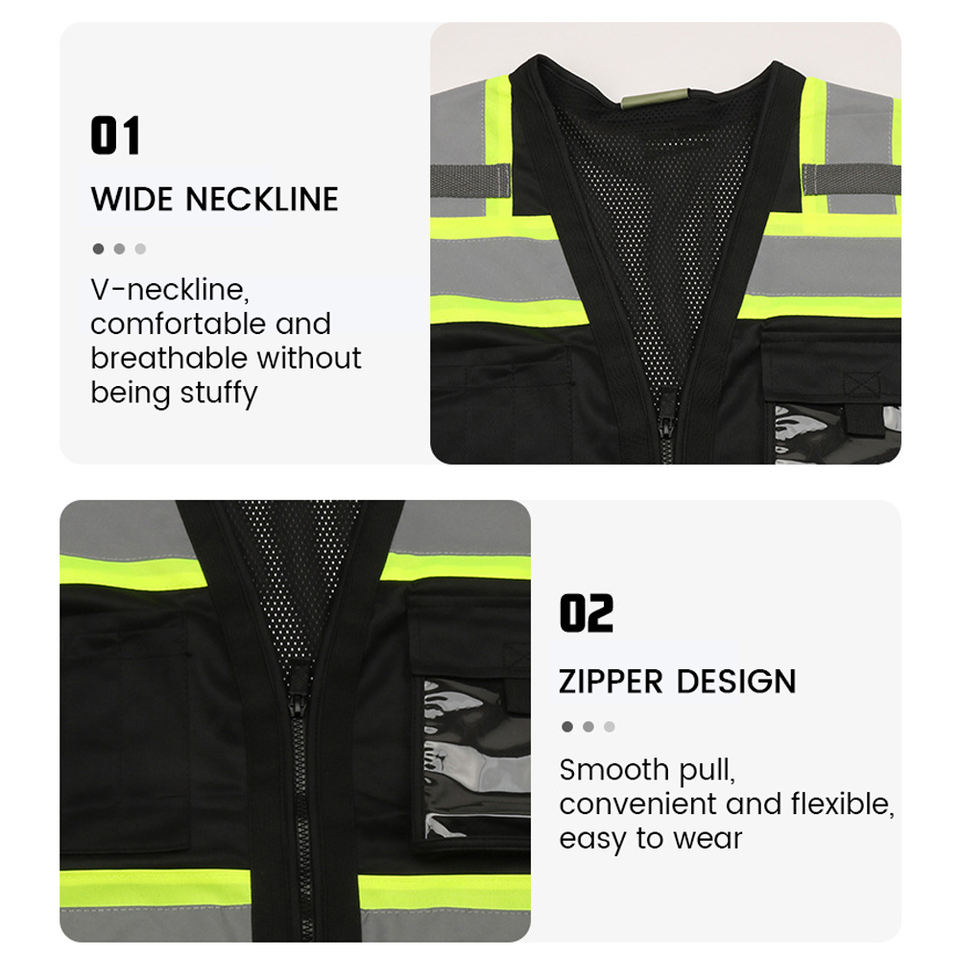 El mejor chaleco de seguridad reflectante impermeable de alta visibilidad con chalecos de seguridad de trabajo con múltiples bolsillos Logotipo negro La mejor ropa de seguridad